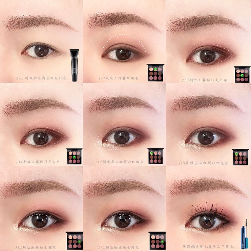 #勃艮第紅酒色系眼妝教學 第一步 #24小時眼影底霜 第二步 #217刷 暈染整個眼窩 第三步 #239刷 眼尾大7字加深 第四步 #219刷 眼頭小7字提亮 第五步 #212刷 睫毛根部補空洞 第六步 #焦點纖長睫毛膏 刷尾端 ( 只刷尾端可以防暈染坍塌 ) ( 顏色圖片上有備註色號😘 IG abb_ artist #undefined #眼影教學 #眼妝教學 #萬用眼影公式 #undefined