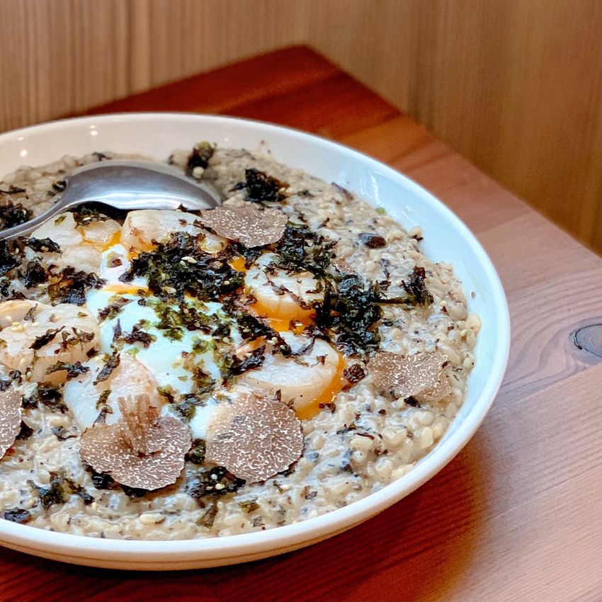 我只能說送上來的時候,整個被份量嚇到,真的很大一盤,然後上面還有一顆水波蛋!!!超級誘人啊!欠戳😍,攪拌的時候,整個松露的香氣撲鼻而來,味道融入在飯裡,裡面還有不少菇類,讓口感上多了一個層次,最上面干貝,沒有全熟,但是很新鮮很嫩!又大顆,配著飯吃超級好吃!我個人很愛這道❤️