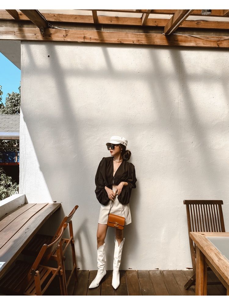 黑+白配色最經典啦!喜歡上衣大大的袖子 超級修飾身型V領設計是天然的修容神器這件上衣可以搭配褲子也很好看!在搭配秋冬不可少的經典皮裙下擺的地方有微微的小開衩一點點的個性美如果跟我一樣是梨形身型這樣穿比例會比較修長也把該修飾的地方藏很好全身都是Amica1391包包Celine #OOTD #popobags #一衣多穿 #穿搭技巧