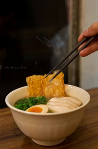 烏龍麵滑嫩Q彈略帶嚼勁,酥脆豆皮吸附飽滿湯汁🍜
