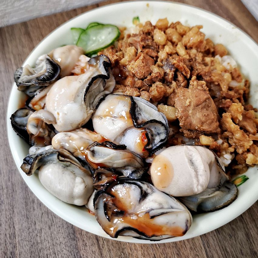 這碗海陸特餐結合肥美鮮蚵和鹹香滷肉,兩個願望一次滿足