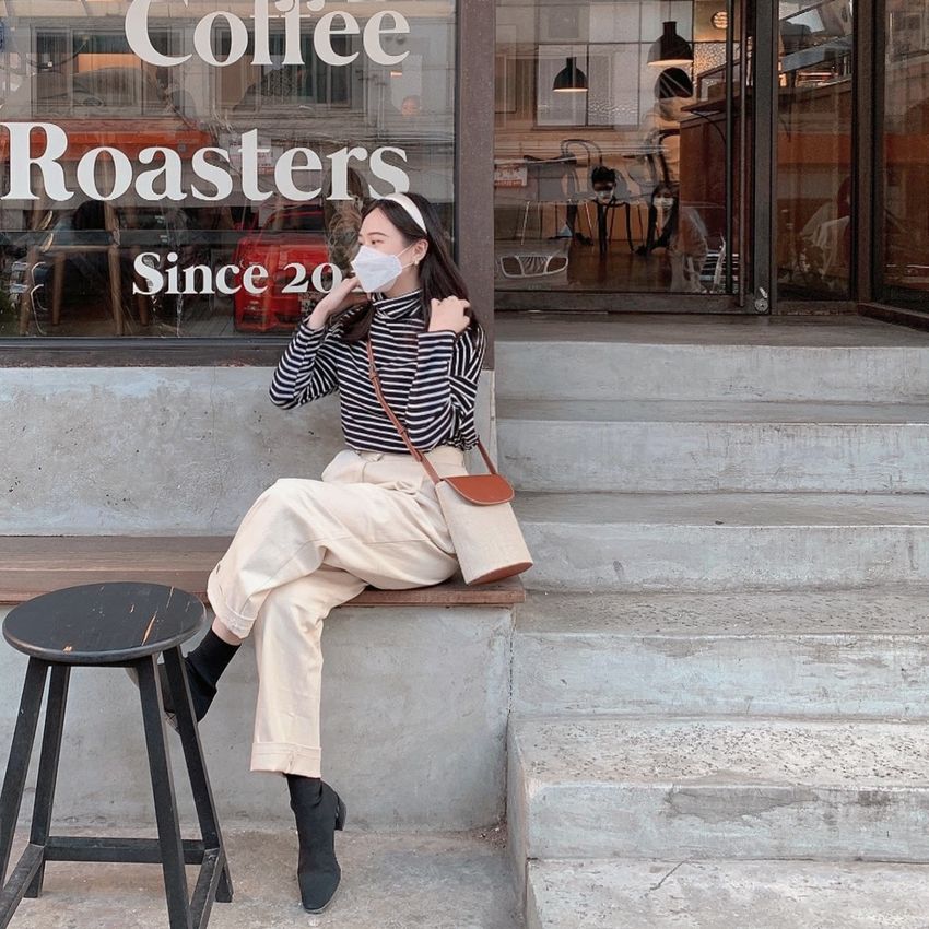 位於新沙站(신사역) 林蔭大道附近的復古味十足的咖啡廳還有手工製的提拉米蘇 真的很好吃🥺今天穿了一件老爺褲加上經典的條紋上衣最近首爾冷冷的 所以搭配了黑色襪靴和風衣包包 : #98도씨鞋子 : #sappun#OOTD #波筆伸展台 #秋冬穿搭 #韓國服飾