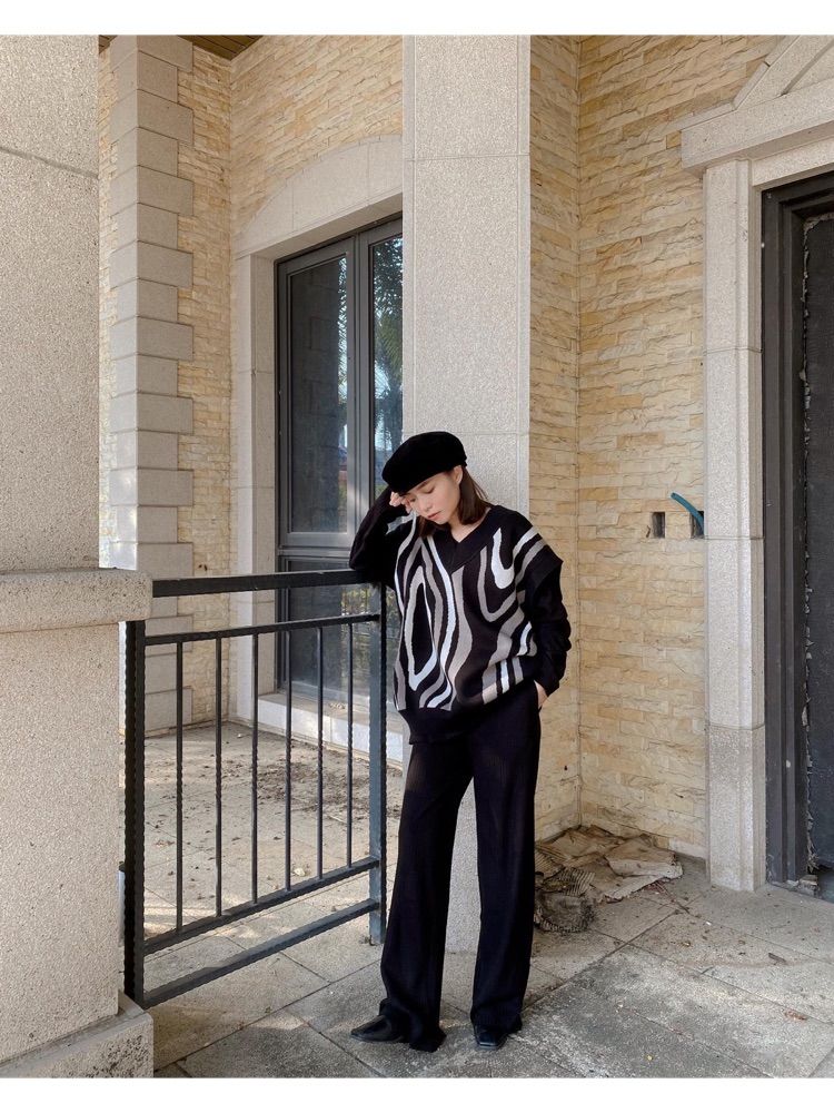 搭配大落肩的圖紋背心有更優雅的感覺