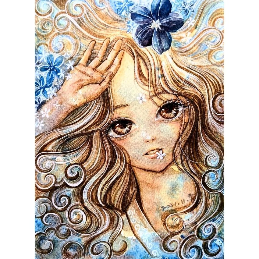 中國古代的吉祥圖案,象徵高升和如意,被廣泛裝飾在古代的建築、雕刻、服飾、器具及各種工藝品上。雲紋讓我覺得跟最近流行的木馬捲有點相似,所以就將此髮型與圖案融合😚#圖文 #圖文創作 #手繪 #插畫 #文創 #水彩
