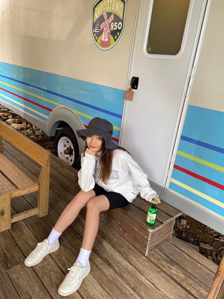 大學T /kiang_kiang_der這次來住露營車地點就在新北金山,從台北來車程不到一小時!每一個露營車都有客廳跟獨立泡湯池♨️晚上會幫你準備烤肉的食材可以直接在露營車前烤肉哦完全可以人到就好,這裡什麼都有🤣🤣