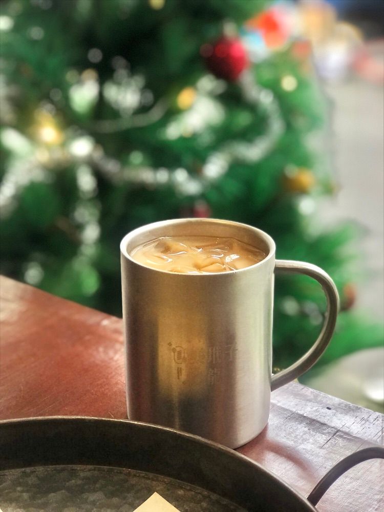 這次是點冰奶茶、有點甜膩,要等杯子裡
