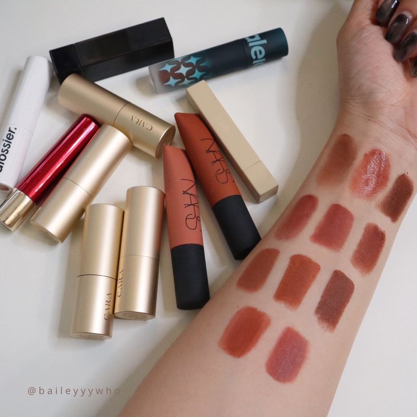 分享去年用到的一些土色系唇膏 不多但這些都是我很喜歡的顏色 這種顏色我一年四季都覺得很美 > < 👉其中最喜歡 carabeauty、heme、nars的質地 它們可以很好暈染嘴唇邊界 讓嘴唇看起來比較豐盈一些 👉glossier、kate的潤唇膏質地顏色會被暈開,有時候顏色會只堆在唇緣 👉kaleidoscope、sitE質地比較難推,在暈染的時候會需要有點技巧 看回自己的唇膏數 覺得自己需要收集更多唇膏才行 XD #秋季妝容