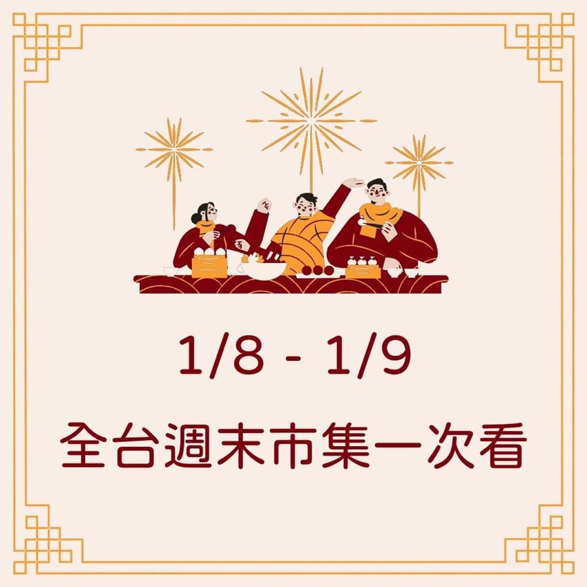 ✨1/8 - 1/9 市集特輯✨ 元旦連假後的第一個週末 相信大家想放假的心還沒有消散吧?🤣 那就去逛逛市集吧 🎪 這篇收藏起來以備不時之需!🥰 🔹🔹🔹🔹🔹新北🔹🔹🔹🔹🔹 🎪 2022新北濕地藝術季·裸裸實驗市 📆 1/8 - 1/9 🕘 12:00-18:00 📍 新月橋板橋端(堤防外,鄰近435藝文特區) 🎪 斜槓職人市集 📆 1/8 🕘 10:00 - 18:00 📍淡水捷運站 1號出口/金色水岸旁廣場 🎪 斜槓職人市集 📆 1/9 🕘 10:00 - 18:00 📍 新店捷運站/東岸碧潭吊橋下廣場 🔹🔹🔹🔹🔹台北🔹🔹🔹🔹🔹 🎪 第20屆 NEXT Toy Market 玩具市集 📆 1/8 - 1/9 🕘 12:00 - 19:00 📍 瓶蓋工廠台北製造所 🎪 邊緣人市集· MAJI MAJI 集食行樂 📆 1/8 - 1/9 🕘 12:00 - 19:00 📍 MAJI MAJI 集食行樂_玻璃屋廣場 🎪 年貨·年獲市集 📆 1/7 - 1/9 🕘 11:00-18:30 📍 台北市迪化街永樂廣場 🔹🔹🔹🔹🔹桃園🔹🔹🔹🔹🔹 🎪 桃園十二籃主題市集·Xpark水族館 📆 1/8 - 1/9 🕘 11:30 - 19:30 📍 桃園市中壢區春德路105號 🔹🔹🔹🔹🔹新竹🔹🔹🔹🔹🔹 🎪 新竹下竹町文創市集 📆 1/8 - 1/9 🕘 10:00 - 18:00 📍 新竹火車站後站最大停車場 🔹🔹🔹🔹🔹台中🔹🔹🔹🔹🔹 🎪 十二籃主題市集·麗寶Fun市集 📆 1/8 - 1/9 🕘 11:00 - 17:00 📍 台中麗寶樂園 🎪 台水市集 📆 1/8 - 1/9 🕘 13:00 - 21:00 📍 台水商場 🔹🔹🔹🔹🔹嘉義🔹🔹🔹🔹🔹 🎪 朴通聚落市集《冬日品酒·微醺小酌季》 📆 1/8 🕘 13:00 - 20:00 📍 嘉藝點水道頭文創聚落 🔹🔹🔹🔹🔹台南🔹🔹🔹🔹🔹 🎪 手作人的倉庫黑洞大出清 📆 1/7 - 1/9 🕘 12:00 - 16:30 📍 台南市珊竹製作所 🔹🔹🔹🔹🔹高雄🔹🔹🔹🔹🔹 🎪 雄鎮北門·落日市集 📆 1/8 - 1/9 🕘 15:00 - 20:00 📍高雄市雄鎮北門廣場 🎪 香蕉碼頭市集 📆 1/7 - 1/9 🕘 13:30 - 19:30 📍 高雄市鼓山區蓬萊路23號-駁二香蕉碼頭 #市集