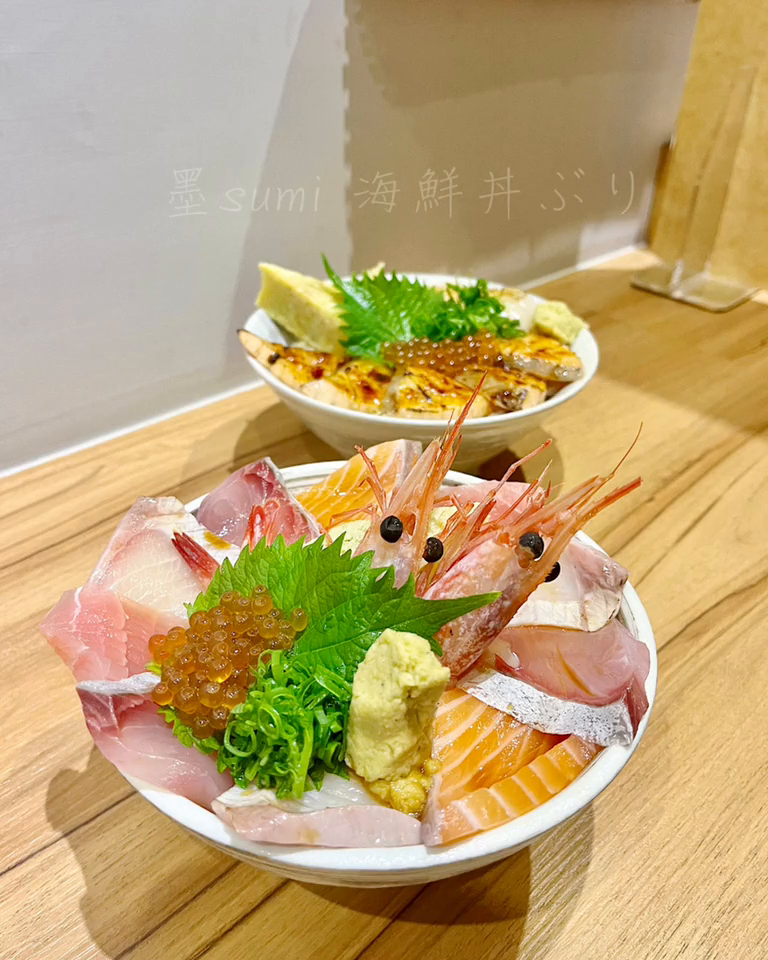 📍墨sumi 海鮮丼ぶり 🚇桃園中壢區 ⏰ 11:30~14:00|17:30~20:30(二公休⛔️) 🔔可無限續醋飯/味噌湯 🔍 桃園市中壢區民生路85號 🔆#炙燒焦糖鮭魚肚丼💰380 炙燒後形成的焦糖脆片 配上入口即化的鮭魚油脂香 加入也炙燒過的干貝 中間不忘放上橘光閃閃鮭魚卵 最後來點蔥花與香氣獨特的紫蘇 一級鮮的頂級饗宴 🔆#狠激丼💰480 去殼的胭脂蝦又鮮又甜 完全不帶任何腥味處理得宜 各樣的生魚片厚薄適中 環繞醋飯排排站圍成一圈圈 配料有方形帶甜味的玉子燒 還有必不可少的鮭魚卵 #墨sumi 海鮮丼ぶり#桃園美食#桃園日式#中壢美食#中壢日式#桃園生魚片#中壢生魚片#巷弄美食#隱藏版美食#日式料理#海鮮控#桃園海鮮#中壢海鮮
