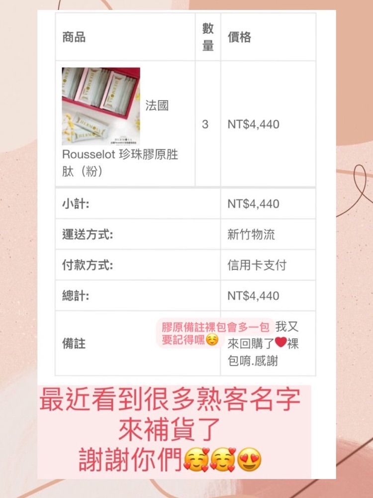 #膠原反饋 膠原備註裸包會多一包 要記得嘿☺️ #膠原蛋白 #保健食品 #保健 #葉黃素 #益生菌 #代謝 #基礎代謝 #蔓越莓 #免疫力 #珍珠粉 #皮膚管理 #健康