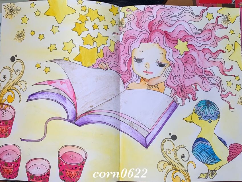 小玉米追蹤舊圖新發舊圖新發 No.103 📔童話奇緣 🖍櫻花水彩 🖍紙膠帶 原本書本上的紙膠帶撕掉 畫上水彩 但透頁了 補救就這樣吧! #著色書 #著色畫 5收藏評論發布於 2022-01-22,更新於 2022-10-11