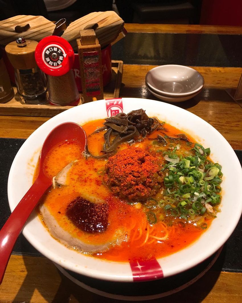 位在台中老虎城裡面的日式拉麵,照片中的拉麵是「赤王」,上面那團肉是豬絞肉,味道算中等不過不失