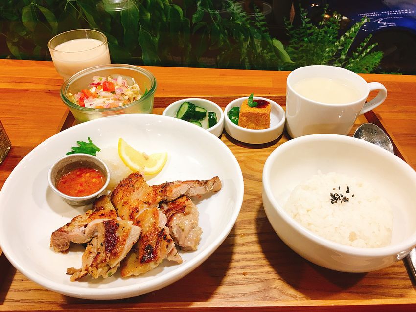 不過我覺得民生店整體素質來說比不上東湖店,不過還是算挺好吃的,南洋風味的餐都會附上特製酸辣沾醬,配上煎得焦香的雞腿肉或是松阪豬很下飯,而且附的小菜都很好吃喔,中午套餐會有甜點,晚餐就沒附了,不過想單點蛋糕他們家也有