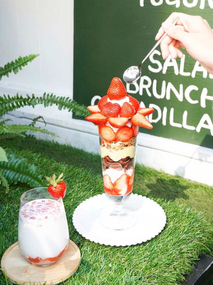 以及裝飾滿滿的新鮮草莓,整杯吃完超滿足😻