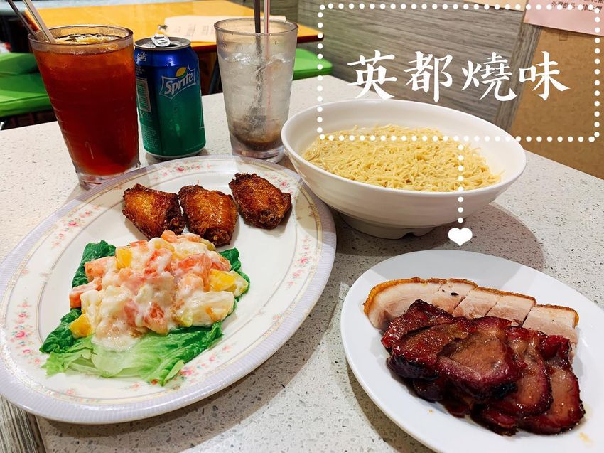 燒味雙拼湯粉麵餐(燒肉+叉燒+生麵)32hkd 紅豆冰/什果冰小食餐(炸雞翼3隻+沙拉)32hkd - 香港菜單上的各種茶餐常餐對台灣人來說真的很難懂+難理解,尤其換各種飲料有各種加價也很心累😂總之~我們這次來吃下午茶 - 我應該是太久沒吃生麵,這次吃覺得怎麼阿摩尼亞的味道有點重😅但這可能就是生麵的特有味道吧(?其實還不錯吃有種越吃越涮嘴的感覺 - 我不會用一堆大同小異的形容詞來形容叉燒口感跟味道,但他們家的叉燒跟燒肉就是好吃的!炸雞翼也好吃😋然後香港每次寫配的沙拉🥗不要以為很健康,十之八九都是長這樣沒菜加一堆美乃滋跟罐頭水果😂雖然不健康可是這家的「沙拉」我覺得也不錯吃啦 - ✅這家在黃大仙附近喔!可以拜拜完順便來吃😆 - 地點📍:黃大仙竹園雙鳳街20號地下(港鐵黃大仙站A出口步行8分鐘) 電話☎️:852 23297275 營業時間💡:06:30-22:00 - #波筆遊世界 #波筆帶你去旅行 #POPO帶我去度假 #POPO帶我去旅行 #你今天PO了嗎 #香港 #香港旅行 #玩遍香港 #香港達人 #香港旅遊 #香港景點 #香港玩樂 #台灣人在香港 #香港好去處 #台灣人教你玩香港 #台灣人帶你玩香港 #popo旅遊 #香港行程 #香港美食 #香港打卡 #波波發胖 #波筆吃貨家 #波波食堂 #POPO帶你吃好料 #黃大仙 #黃大仙美食 #英都燒味 #香港燒臘#香港燒味#老饕帶你吃港點
