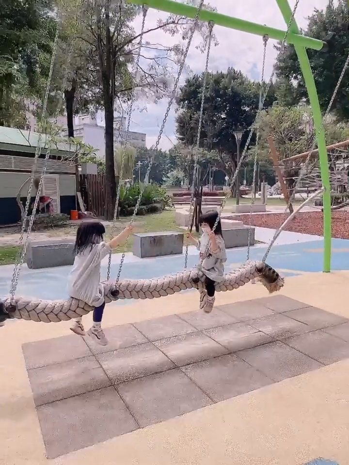 👩🏻是要盪去哪? 👧🏻👧🏻盪到樹上
