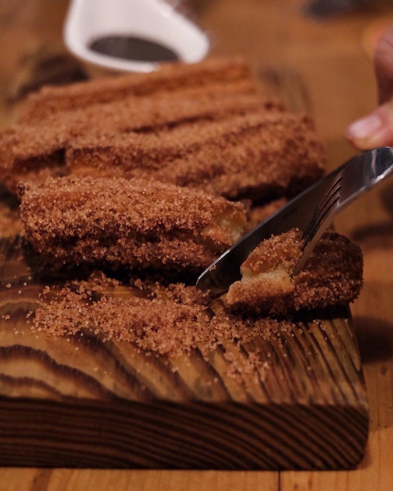 西班牙吉拿棒炸得酥脆,巧克力沾醬