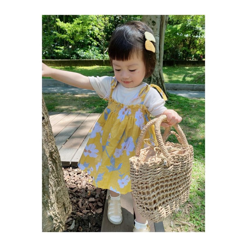 印花小洋裝與草編單品, 絕對是野餐少女的穿搭首選👒 整身米黃白的柔柔色調, 配上最厲害的燈光大師:大太陽, 這組照片看了心情也跟著愉悅呢💛 🎈16m - 這裡紀錄蔥與桃的「穿搭筆記」 只有☄️帥帥跟漂漂✨ 更多屬於我們的日常 都在我們的IG唷! 請搜尋👉momonegi.ippon #寶寶穿搭 #女寶穿搭