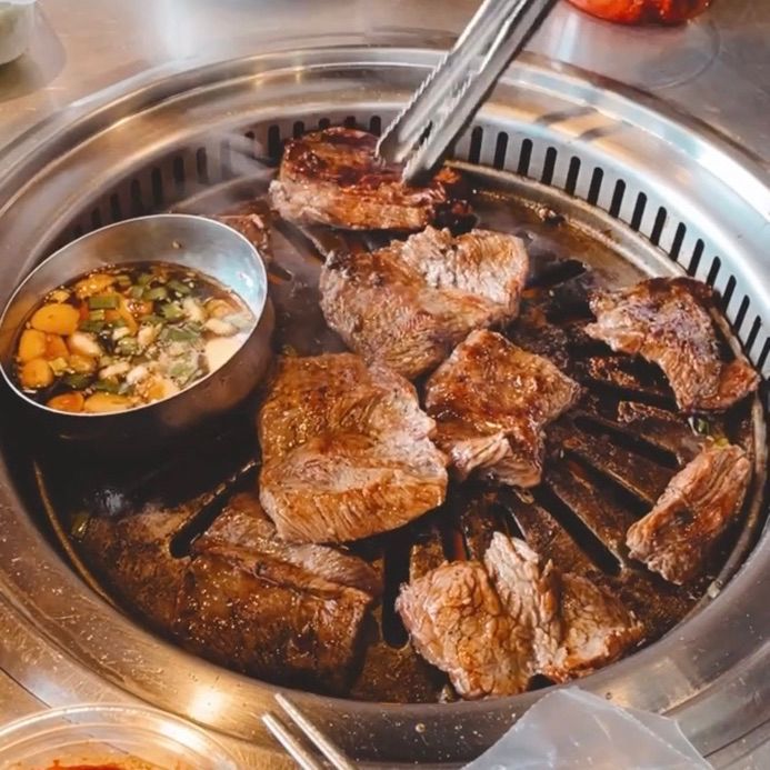 那天點了牛板腱跟招牌的橫隔膜,都有專人幫忙烤好剪好超幸福,而且肉很有嚼勁但不會咬不動真的很好吃啊~另外大推一定要點他們家的小菜生魷魚,雖然蠻辣的但魷魚很彈牙,真的會一口接著一口停不下來🤤