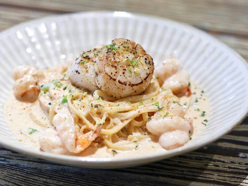 #博多明太子奶油干貝蝦 奶油非常濃郁,干貝跟蝦都是真材實料,口感鮮甜紮實💜