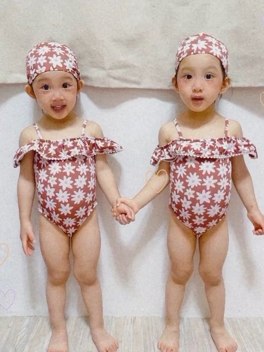 給小寶貝安排的第一套泳衣😍北歐ins風 🌴質感太好了 連身肩帶設計帶著泳帽都可愛連日下雨 我們在家穿穿唄🌼🌼-#同卵雙胞胎 #垛米雙寶 #POPO穿搭 #OOTD #女寶寶泳衣 #夏日泳衣