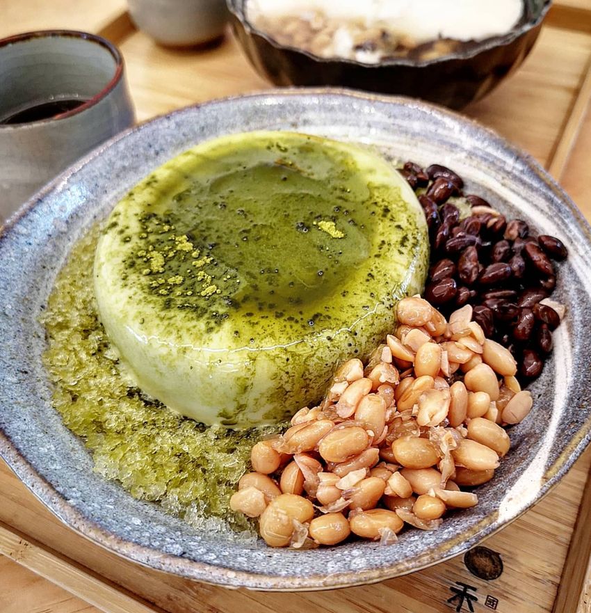 超級特別的碧螺春豆腐冰,巧妙結合三峽最具盛名的碧螺春,茶味之濃,抹茶控絕對大愛,堪稱台版宇治抹茶,主角豆腐冰有著圓滾滾的可愛模樣,像是奶酪,但口感更加Q彈