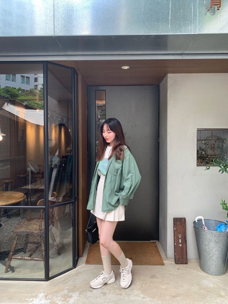 好久沒拍穿搭哩一個悠閒的早上最愛穿襯衫的我裡面搭個短裙扎個上衣 整體溫柔色系 但又不會單調搭配長襪拉長整個比例這樣更好喔#OOTD #ootd #ootdstyle #不藏私穿搭技巧 #夏日女神降臨