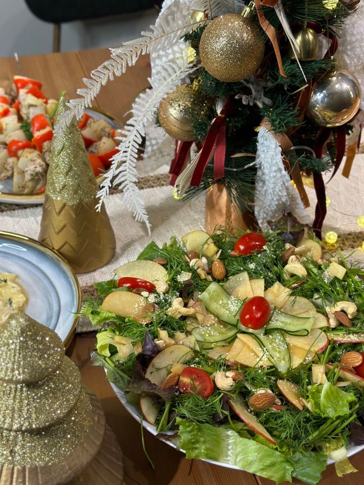 位在台北市中正區的 信二家廚 @shinji.living ,這次佈置了滿滿聖誕氣息的空間來迎接我們;十來位第一次見面的網友,照著店家幫我們準備好的食譜,連像我這樣的料理小白都可以做出好吃又好看的聖誕花圈沙拉🥗