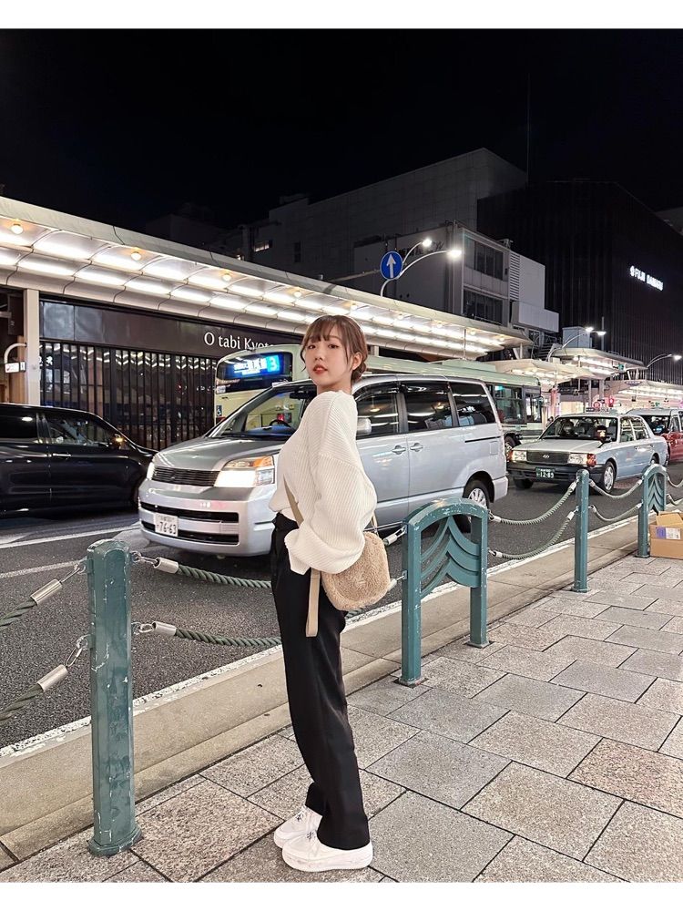 日本真的隨便一個街邊都很好拍🥹出國總是很勤勞打扮😂😂😂今天搭一個簡單的黑白穿搭從白衣到黑褲再到白鞋讓身上不超過兩個顏色整體乾淨又好看針織衣:apo西裝褲:淘寶鞋子:Air Force #穿搭 #日本
