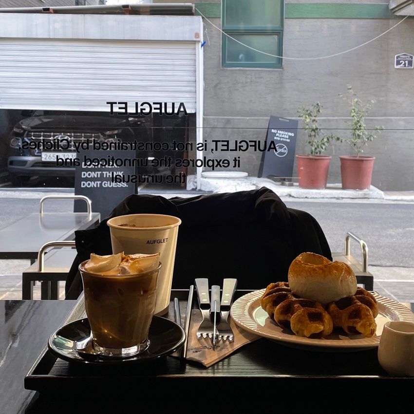這裡的可朗芙真的是一絕 奶油美式也是.ᐟ.ᐟ.ᐟ 一人吃了一半 真的很想再去加點一份🥹 剛烤好熱熱的 一口冰淇淋一口鬆餅 非常滿足♡ ▪️𝗖𝗿𝗲𝗮𝗺 𝗖𝗼𝗳𝗳𝗲𝗲 𝟳.𝟬 ▪️𝗖𝗿𝗼𝗳𝗳𝗹𝗲 𝟭𝟬.𝟬 My Instagram: kk_im26 #kkfood #KK_Seoul #首爾 #Seoul #Hannamdong #Aufglet #Croffle #兔DO吃喝玩樂