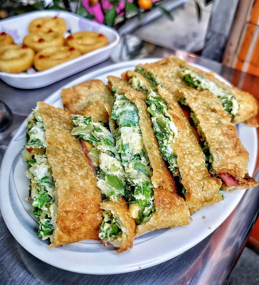 看看這金黃酥脆的外皮,有夠欠吃! 每一口都有咖滋聲,雖然是油炸,但還算清爽,不至於膩口,而且份量頗大,大概是一般蛋餅的1.5-2倍,點了蔬菜蛋餅加火腿起司,小白菜整個爆出來,真的吃超飽 😆