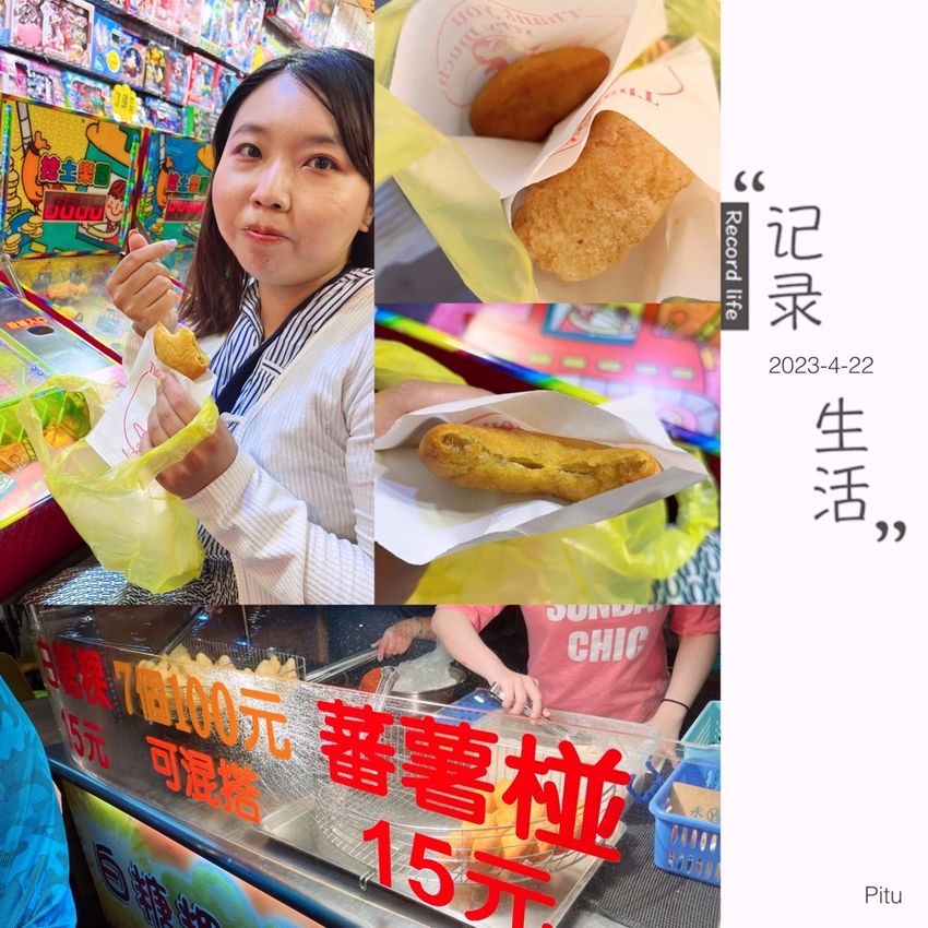 也因為他我才知道鳳山青年夜市離我這麼近,而且像是小型瑞豐夜市,我們玩了好多夜市遊戲,但是禮物超差;還好我吃到我想吃的 #白糖粿 和 #蕃薯椪