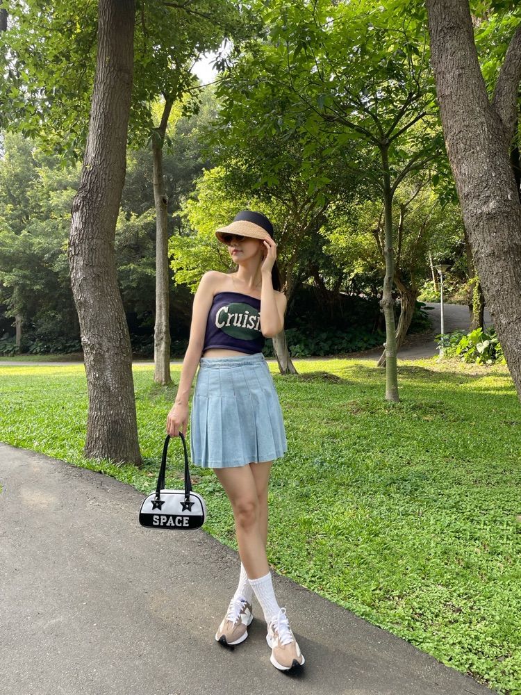 這套穿搭是為了棒球包而搭配,因為包包可愛,特別穿百褶裙,讓人看了年輕有活力?搞得好像要去看棒球賽!偷笑˃ᴗ˂