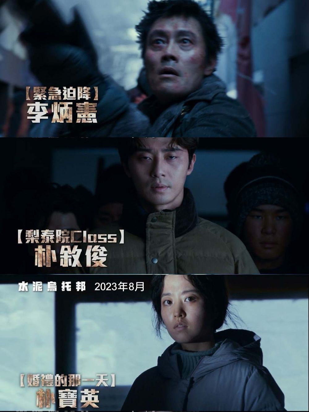 以《白頭山:半島浩劫》《緊急迫降》等作,展現驚人演技的李炳憲,這次在《水泥烏托邦》中飾演臨時住戶代表「英卓」一角,是在危機中以果斷的決斷力和行動力,不懼危險地守護公寓的重要人物。另外,透過《金秘書為何那樣》、《梨泰院Class》等作,令觀眾印象深刻的朴敘俊,在《水泥烏托邦》中飾演一名誠實的公務員「民成」一角,為了守護家人和公寓,在面對危機時變得大膽、奮不顧身,是「英卓」的得力助手。而以《狼少年》、《大力女子都奉順》等作,深獲觀眾喜愛的朴寶英,在《水泥烏托邦》中飾演朴敘俊的妻子「明華」,護理師出身的她在危急的狀況中照顧受傷的人們,同時也不失己身的信念。《水泥烏托邦》是李炳憲、朴敘俊、朴寶英首度合作的電影作品,因此觀眾們也十分期待他們將會展現多麼精彩的演技默契!
