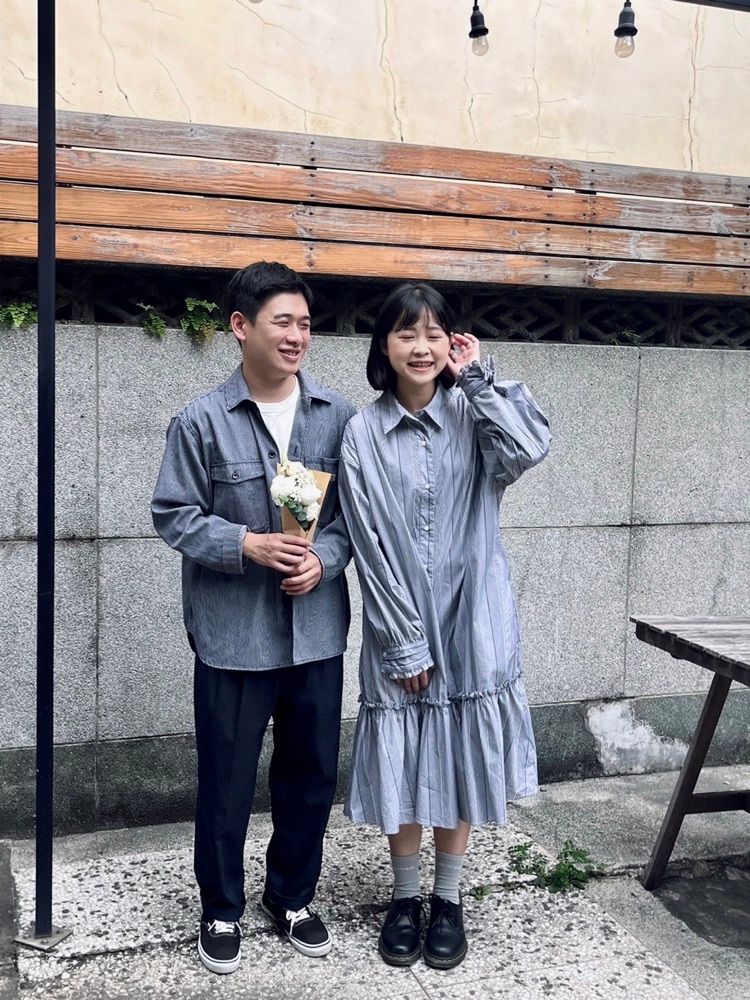 男友的襯衫上衣和我的襯衫洋裝相同材質和色調 搭上自己喜歡的單品讓情侶間的穿著能契合又不會太個死板👍🏼女生穿襯衫不想太中性可選擇洋裝或是oversize 當作外搭也能甜美可愛~#popo筆記 #ootd #share #daily #穿搭分享 #情侶拍照 #情侶穿搭 #outfit