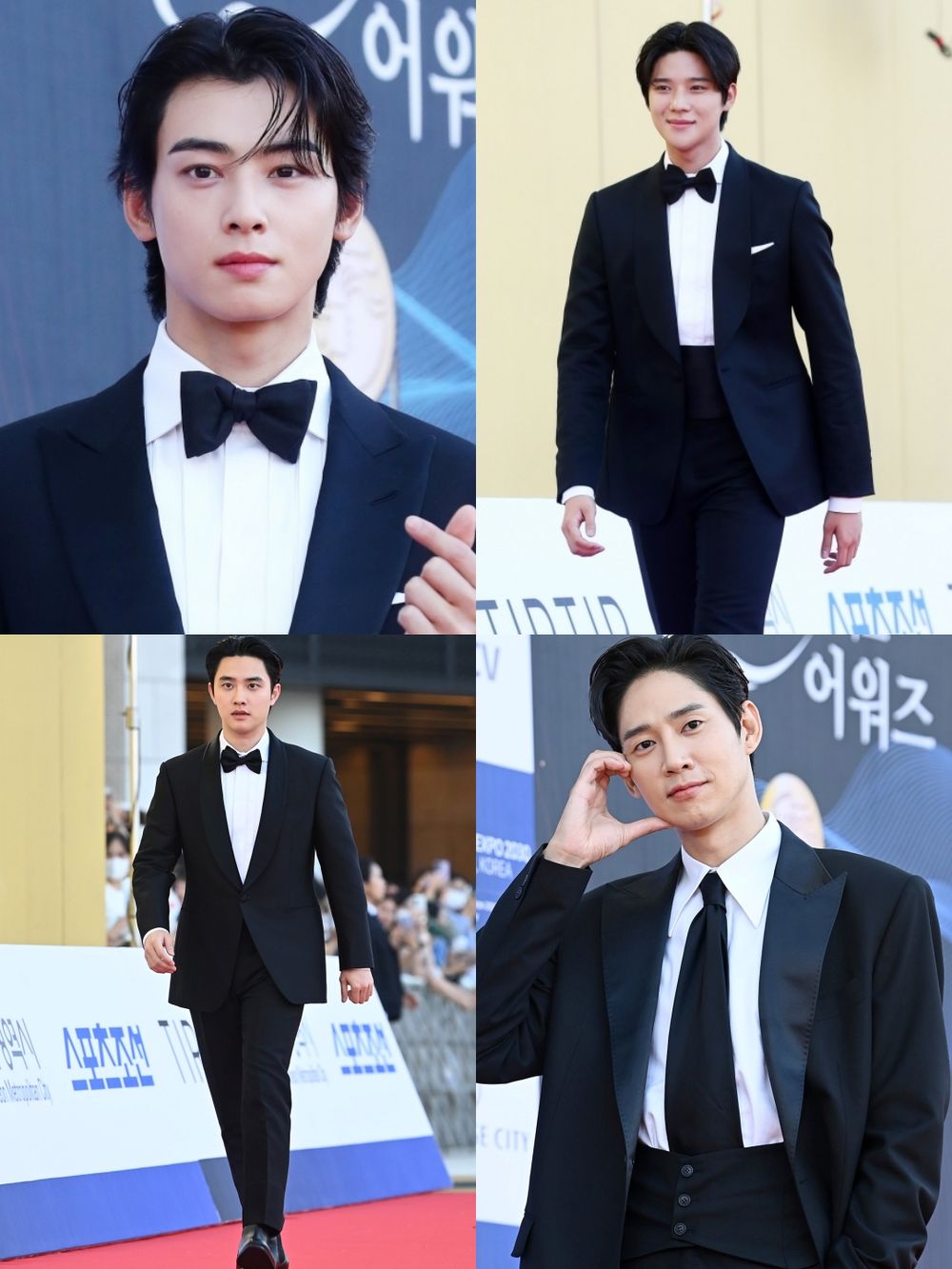 在戲劇上展現精湛演技、備受肯定的都敬秀,本次也憑藉著《真劍勝負》角逐最佳男主角,也讓粉絲們於有榮焉~紅毯上選擇了最不出錯的黑西裝搭配領結,單釦剪裁俐落的西裝外套,更襯托出他獨特的氣質!