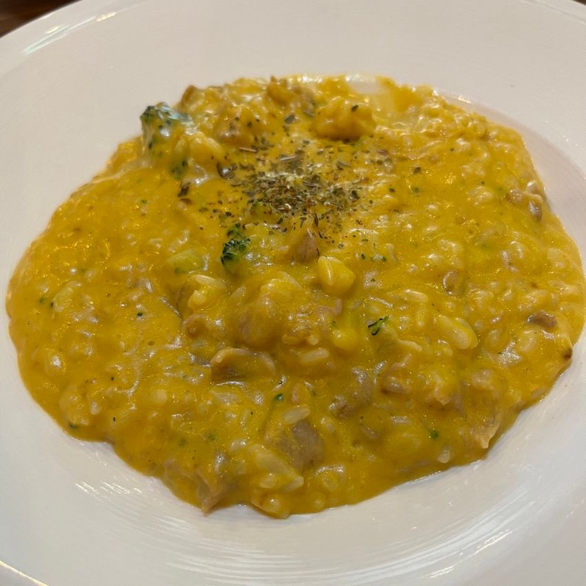 我們最後點了南瓜濃湯、奶油南瓜豚肉燉飯、奶油金沙豬肉義大利麵🍝