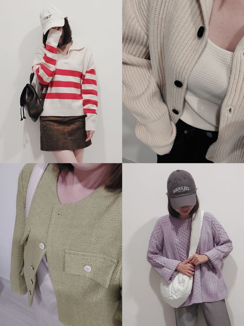 第四套-紫色毛線毛衣+灰色錐形褲+灰色帽子,我自己一直都很喜歡紫色,所以紫色毛衣、紫色大學T有很多,紫色不會很難搭,最基本的黑灰白一定沒問題,而且其實紫色配上灰色非常好看,很有高級感。