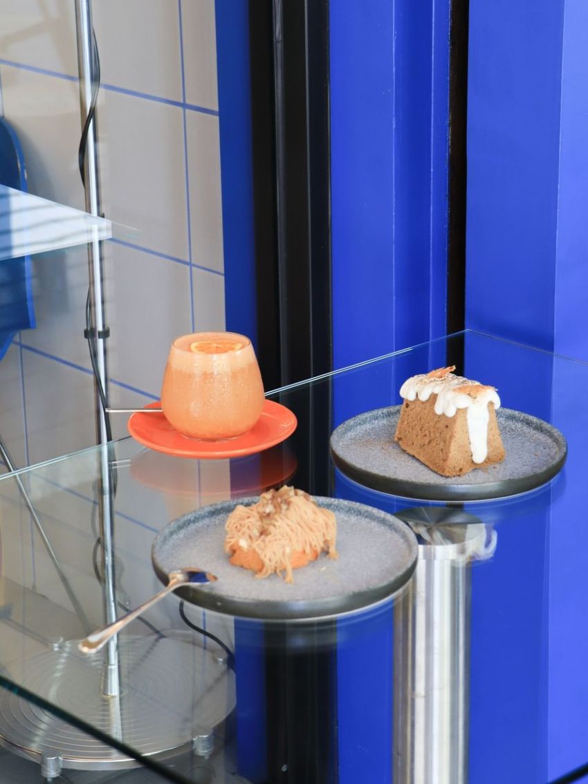 甜點金蘋果是以蓬鬆金萱戚風為基底,夾層有驚喜的金萱茶凍及焦糖蘋果、加上鹹甜鹹甜的鮮奶油,這個好吃耶🤤還有一款新品是栗子控必點的栗栗,中間有一顆超大的栗子,上是層蘭姆酒卡士達及奶香栗子泥。