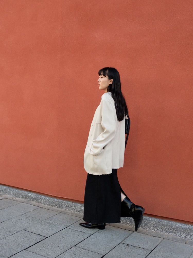 喜歡套上西外感到自信的廓形材質是溫潤有紋理的面料不收邊的鬚鬚造型也是今年好愛的元素Outfits all by FENIX#OOTD #波筆伸展台 #簡約穿搭 #西裝外套穿搭 #POPO十月一起鬼混吧