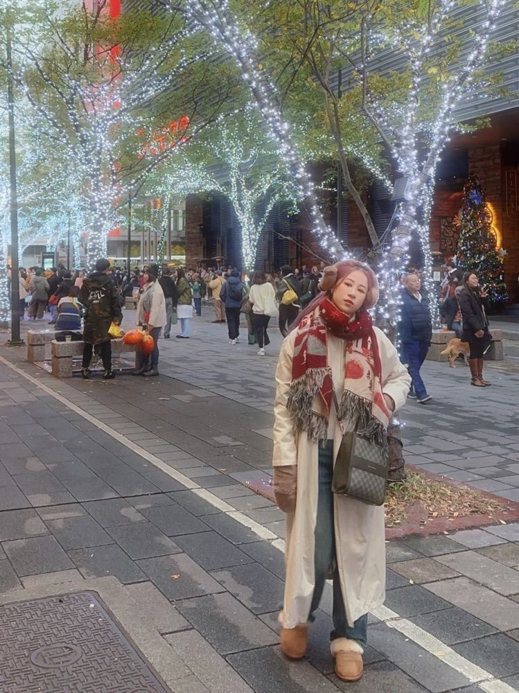 若只穿著大紅色過聖誕節就太弱了 這次穿搭以大地色為基底 搭配聖誕節紅色圍巾(購買處已忘) 及搭配綠色老花包(IG:kevinmccartney.tw) 紅配綠狗臭屁🤣 #POPO穿搭 #12月POPO新起點