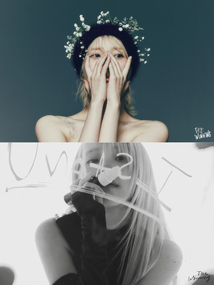 在另一版「U-win」系列的概念照中,則大量運用花來做為點綴,與「I-Win」版本相比,呈現了更加華麗且生動的美感,仙氣十足,尤其是一張帶著乾燥花針織帽並露出大片鎖骨的宣傳照,同時兼具了性感風格,令不少粉絲好奇IU這次回歸的敘事概念會是什麼呢?