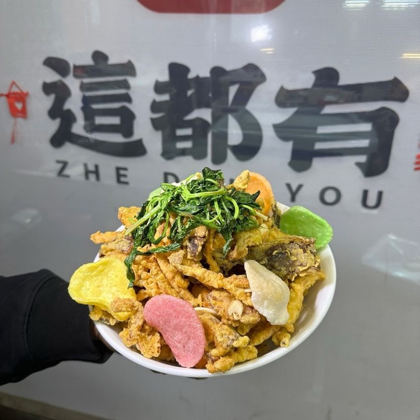 一大桶還會附上蒜片跟彩色蝦片,讓整個料理色香味俱全!!整體吃完不油膩且食材新鮮,CP值超高😍