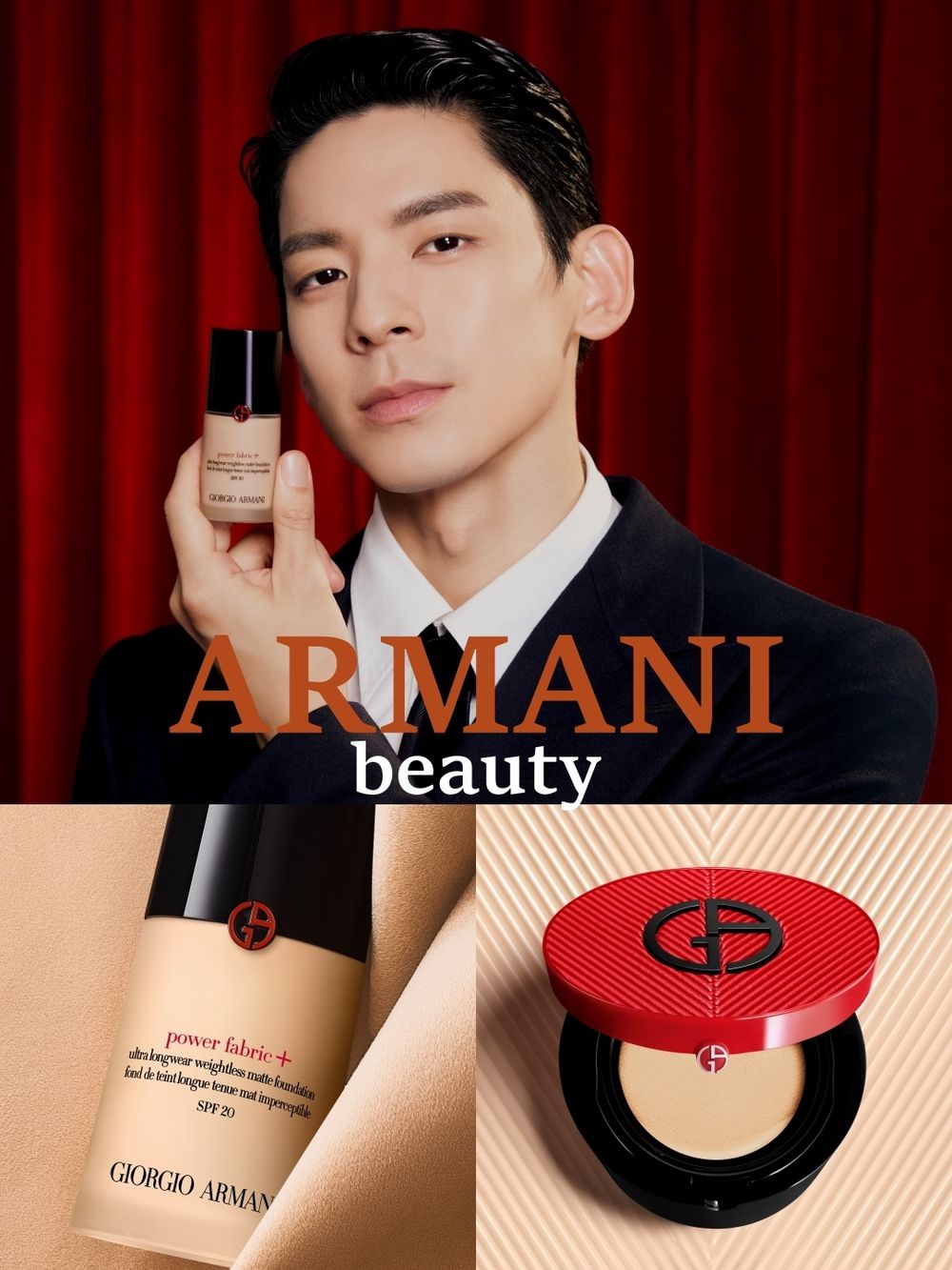 新生代男神林柏宏演藝事業站上高峰,提名獲獎連連,儼然身為紅毯常客的他,每次出席各大典禮或時裝周都氣場全開、帥氣逼人,完美詮釋亞曼尼先生金句「真正的優雅不是眾所矚目,而是令人永生難忘」,他與生俱來的品味造就今日的恣意從容,其實在成為Giorgio Armani底妝摯友前,開啟林柏宏演藝事業的第一罐粉底即是『超持妝絲絨水慕斯粉底』,他不諱言柔霧妝感太適合自己的膚況,面對鏡頭無油光清爽乾淨的臉蛋讓自己更有自信,如今能與亞曼尼合作極其榮幸。