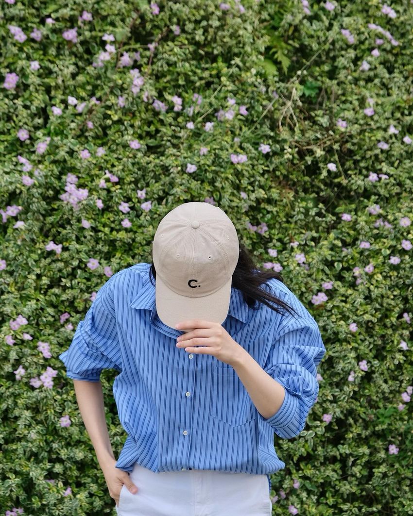 I add @cloverbyclove CLOVE’s baseball cap for a more casual look. This brand is popular among Korean stars. I like that the adjustment part is hidden. I‘ve always had trouble finding the right baseball cap, but I really love this one 💕