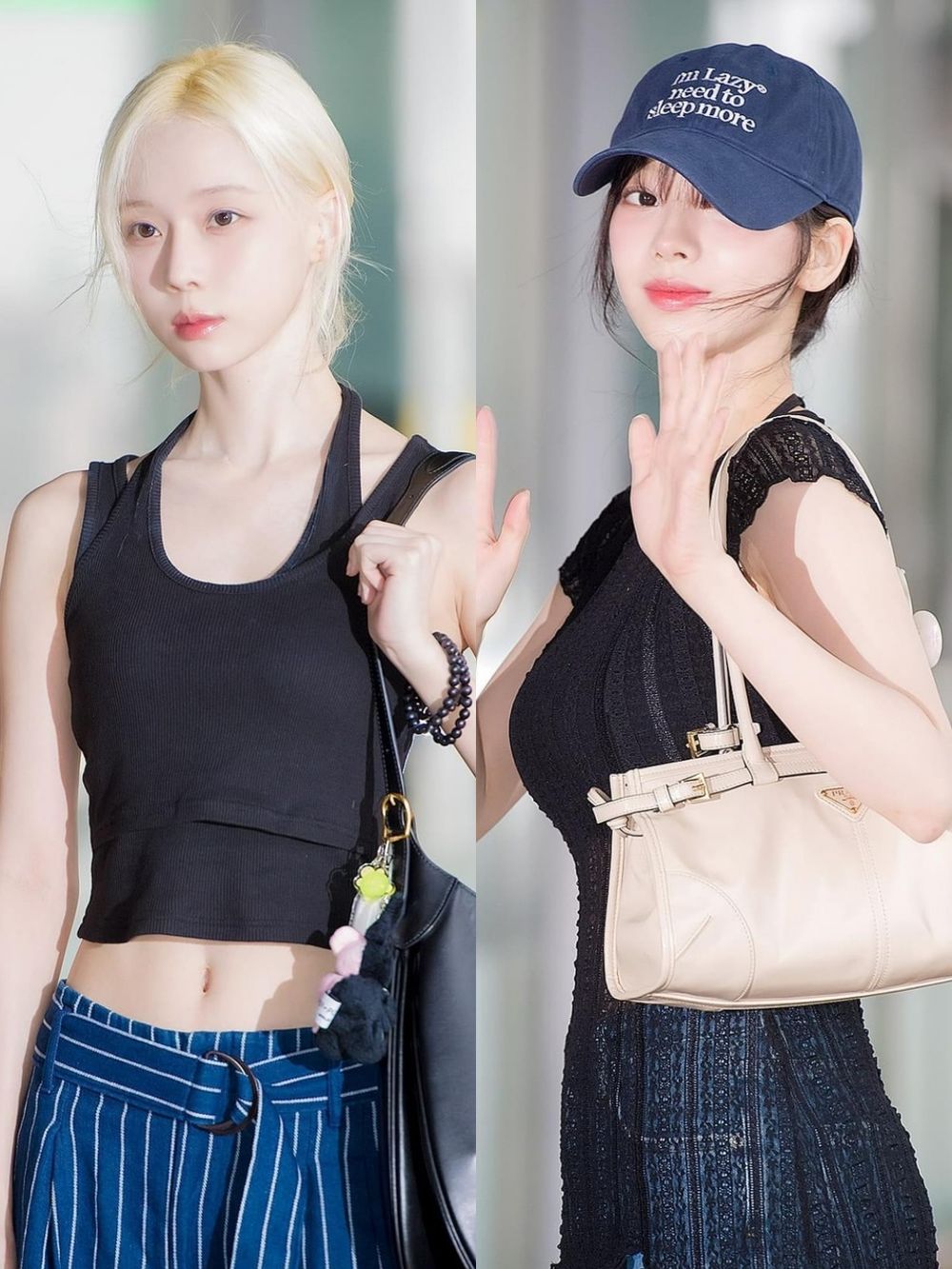 Winter的美貌直接驚艷了當天在場的所有媒體,幾近素顏的她依舊漂亮到不像話,白皙光滑的肌膚完全看不到任合瑕疵,因此Winter也獲得了「純真之神」的新封號!身材瘦小的她揹上大包也讓她的纖細的身形更明顯了!真的就像是洋娃娃本人啊!身穿假兩件的吊帶背心配上藍色條紋寬褲,低腰的褲型還微露了她漂亮的蠻腰。帶有慵懶休閒的造型簡直就是機上最舒適的穿搭。