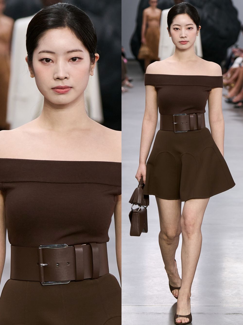 這回現身Michael Kors大秀,甚至直接上台走秀的多賢,也讓大家再次發現多賢的比例真的超級好啊!不僅擁有嬰兒般的巴掌臉,加上完美的腰臀比例線條,讓整體腰線上移打造出修長的逆天長腿,回顧多賢之前現身Michael Kors,每一次的裝造都非常到位,且能隱藏她的真實身高又能凸顯她身材上的優勢,堪稱是矮個女孩的穿搭聖經!