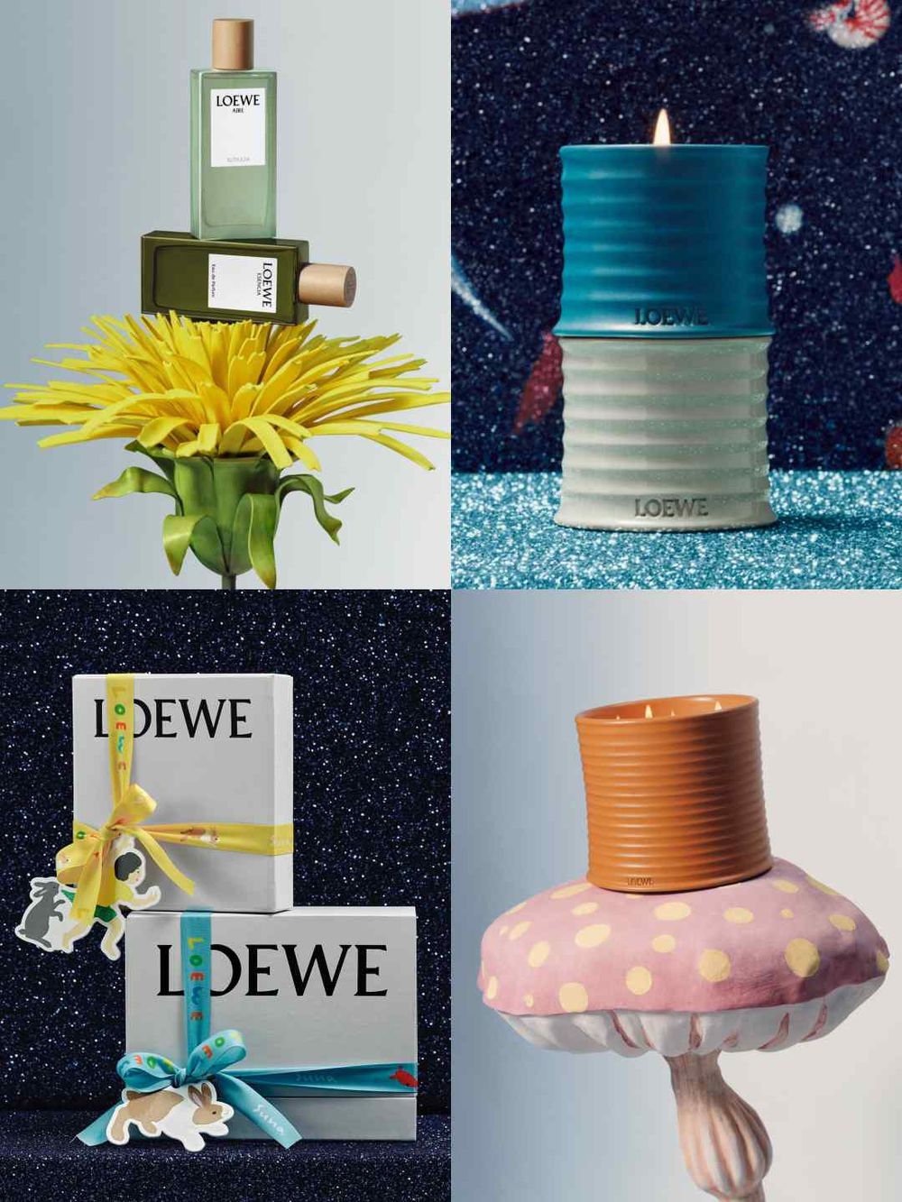 LOEWE香氛再度攜手京都Suna Fujita陶藝工作室,共同打造一系列全新原創畫作與陶瓷藝術品,引領我們穿梭於夢幻般的童趣世界。從蔚藍深海到青翠草地,再翱翔至遙遠的外太空,這一幕也延伸為LOEWE香氛節日的絢爛背景,讓節慶包裝沾染一份童趣歡愉。