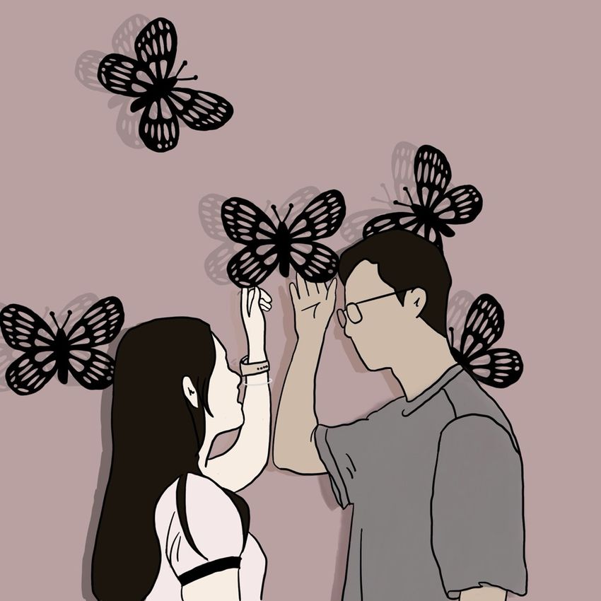 #台中幻覺博物館 中的蝴蝶幻視🦋這張照片是工作人員所拍攝 一直覺得超美超可愛😍沒有工作人員拍攝 好像都拍不出奇幻感(?這次把它畫出來特別有回憶感🥹不知不覺2024也要過了 2025即將到來有沒有一張你特別喜歡的照片呢?😍#似顏繪 #情侶似顏繪 #情侶 #情侶日常 #客製化 #客製化似顏繪