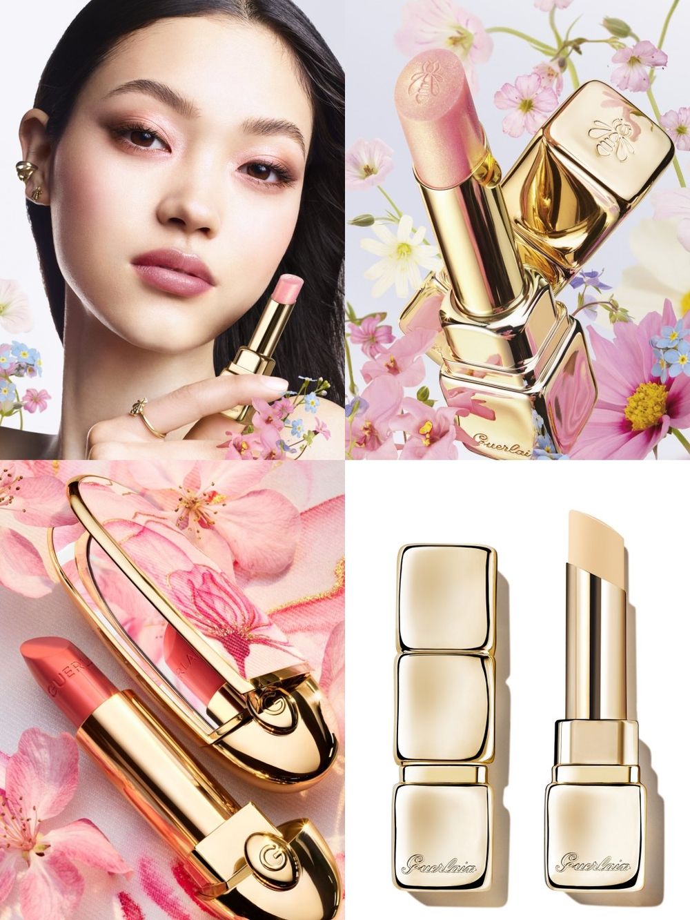 珠光粉色雙唇使用KISSKISS 法式之吻波光蜜糖護唇膏 358 Pearly Rose 草莓煉乳,雙眼以高訂深邃四色眼影盤 129 Honey Amber 蜂蜜琥珀色調妝點,閃耀虹彩微光的顴骨覆上幻彩流星蜜粉球薄紗……她散發著耀眼的光芒。嬌蘭經典波光蜜漾護唇膏的珠光粉紅唇膏上滴落了一滴蜜珠,而KISSKISS 法式之吻波光蜜糖護唇膏的外殼棲息著一隻蜜蜂,象徵著整個系列的配方中皆注入蜂巢珍寶。